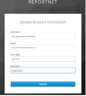If this is your first login to Reportnet 3, after you have been authenticated by EU login, you will be asked to fill a form. Username should just be your email address.