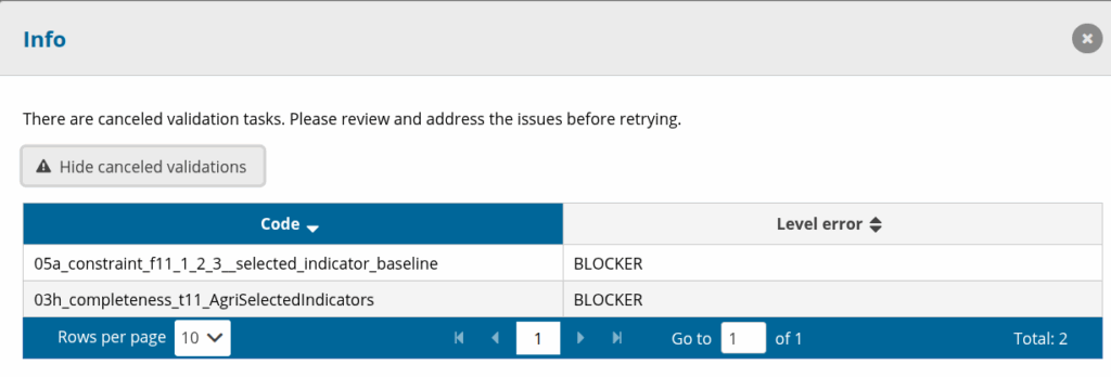If the reporter clicks on the icon, he can see if there are canceled validation tasks.